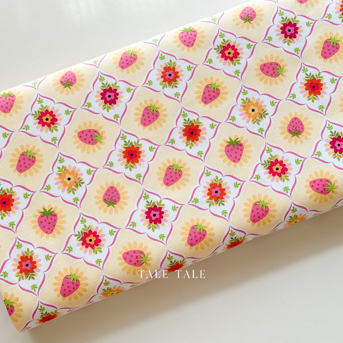 美國品牌棉布-草莓拼貼-黃